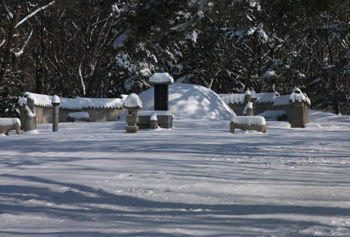 300여년 전의 이 무덤 속 여인의 파란만장한 삶을 아는지 모르는지 문인석은 녹아 내리는 눈을 진땀처럼 흘리고 있었다.
