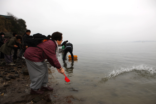 | ▲ 방생을 하기 위해 차례를 기다리는 모습 © 최영숙 |