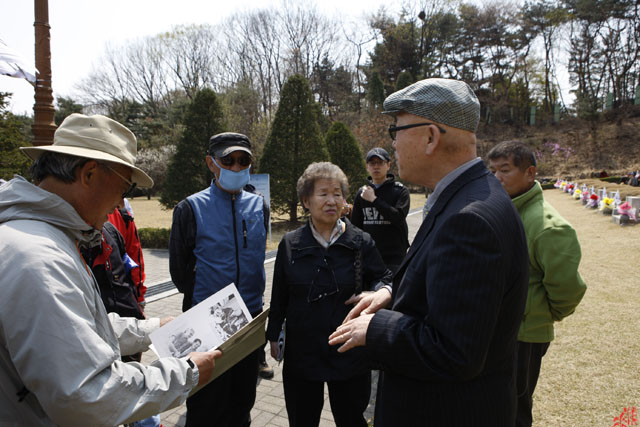4.19 묘역으로 올라갔다. 할머니 한 분이 아들의 묘를 찾고 계셨다.