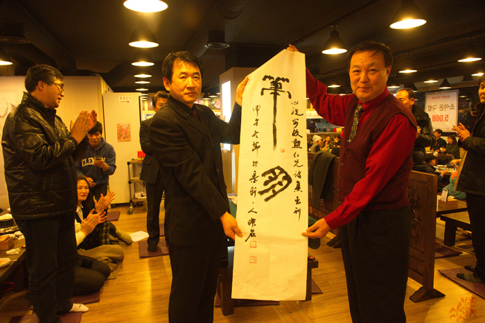 | ▲ 최찬희 전 미술협회장이 안정훈 시인에게 글을 써주었다 © 최영숙 |