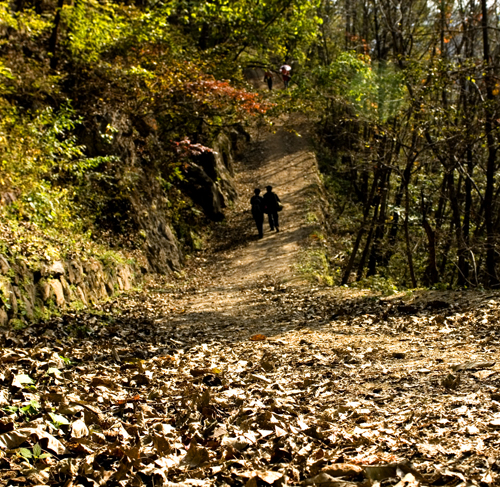 월정사에서 상원사에 이르는 길은 4㎞의 흙길이다. 여름에 갔을 때 먼지가 많이 날리기에 물차가 오가며 물을 뿌리고 있었다. 시멘트 포장을 하면 비에 쓸려서 다시 길을 만들 일도 없고 도로 유지비도 덜 들어간다고 했다. 가뭄에는 물차가 동원되고 장마라도 지면 다시 흙을 깔아야 하는 번거로움을 기꺼이 받아들이고 있는 것은 자연과 하나를 이루는 풍경을 알기 때문이다. 돌아오면서 준경묘만이 간직한 자연과 천천히 동화되면서 걸을 수 있는 여유로운 풍경이 어그러지지 않았으면 좋겠다는 바램을 가졌다.