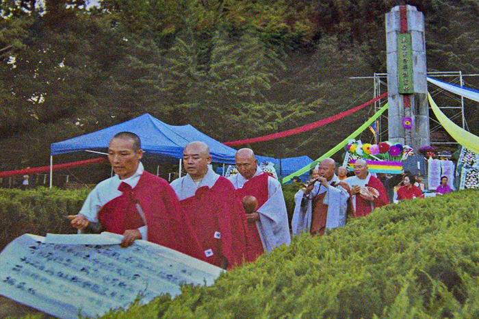 | ▲ 2013년 10월 3일 우금치 동학혁명탑 앞에서 제 1회 우금치 영산재를 지냈다. ©최영숙 |
